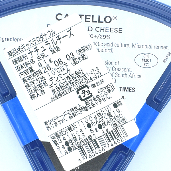 デンマークを代表する青カビチーズ「キャステロダナブルー」。鮮やかな青カビと、ピリッとシャープな風味、そしてしっかりとした塩味が特徴です。濃厚な味わいは、ブドウやクルミと好相性。フルボディの赤ワインと共にお楽しみいただく、洗練された一品です。