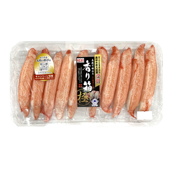 原材料:魚肉(輸入)、卵白、でん粉、かにエキス、食塩、たん白加水分解物、植物油、醗酵調味液、