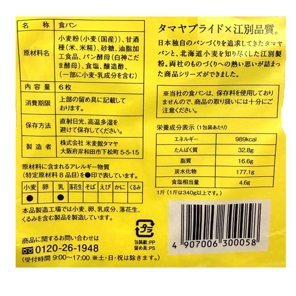 油脂加工食品、パン酵母(白神こだま酵母)、食塩、醸造酢、