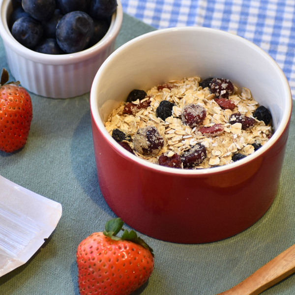 原材料:有機オーツ麦(アメリカ製造)、クランベリー(砂糖)、粗糖、ブルーベリー(砂糖)、クコの実