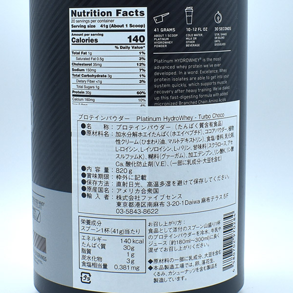 オプティマム ニュートリション プラチナ ハイドロホエイ ターボチョコ