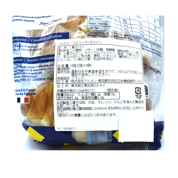 原材料:小麦粉、バター、砂糖、発酵種、植物油脂、パン酵母、小麦グルテン、サイリウムファイバー、
