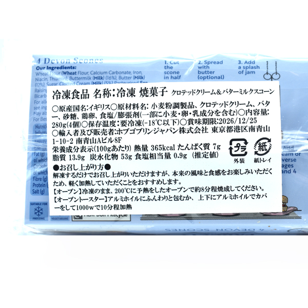 原材料:小麦粉調製品、クロテッドクリーム、バター、砂糖、鶏卵、食塩/膨張剤(一部に小麦・卵・乳成分を含む)