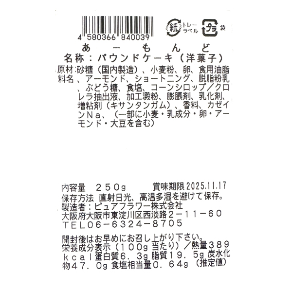 ALMOND POUND CAKE ( PURE FLOUR Co.ltd. )