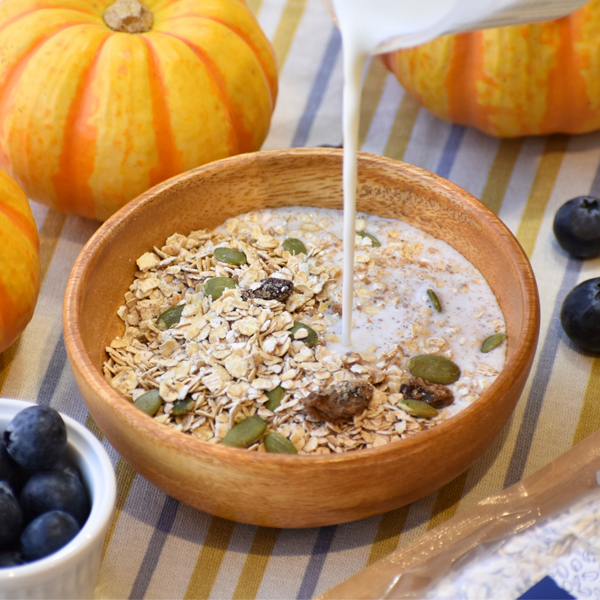 原材料:有機オーツ麦(アメリカ製造)、有機レーズン、粗糖、有機かぼちゃの種、シナモン、