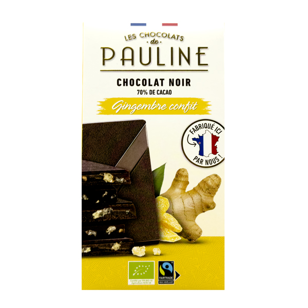 LES CHOCOLATS DE PAULINE ORGANIC DARK CHOCOLATE GINGEMBRE CONFIT
