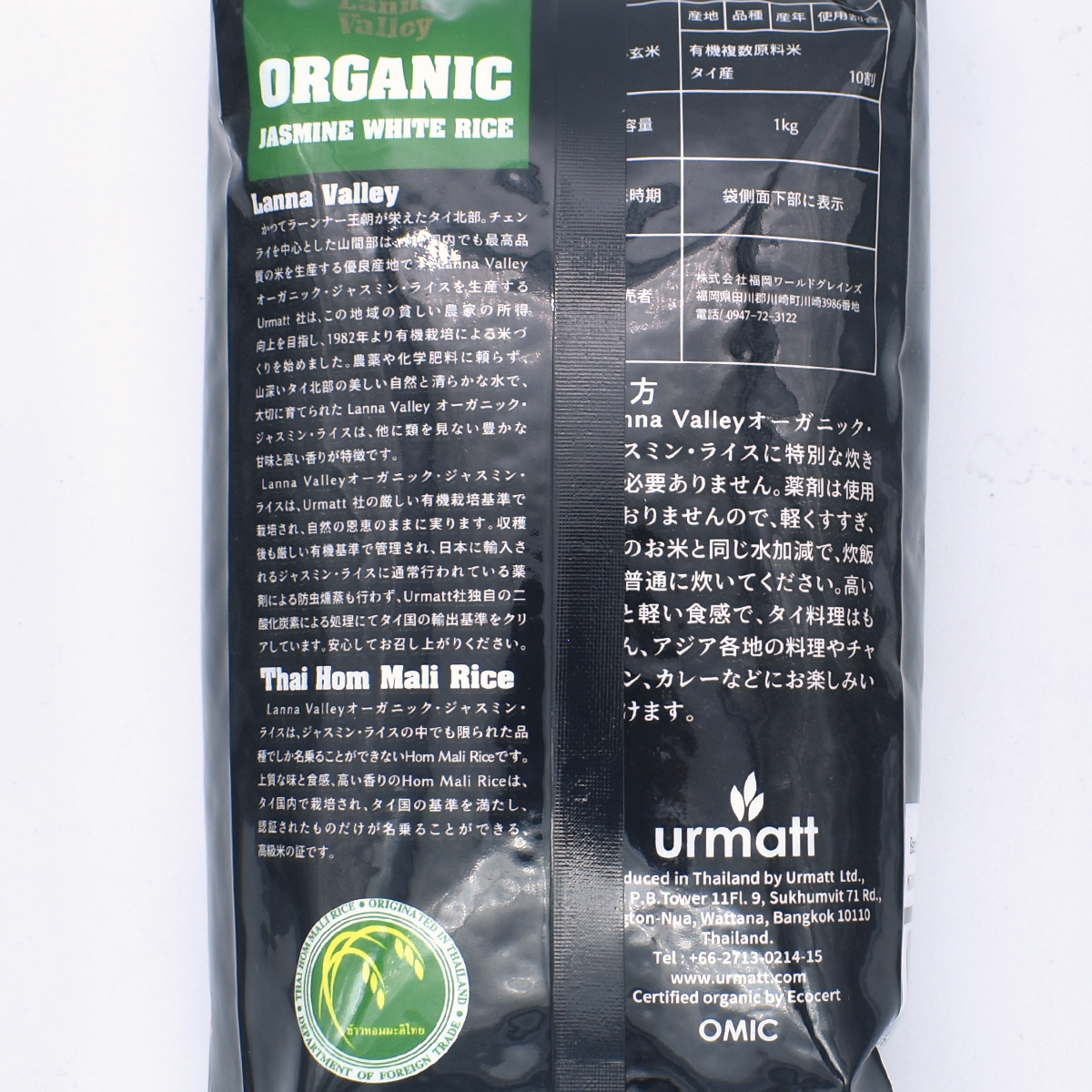 タイ産のオーガニック認証ジャスミンライスです。