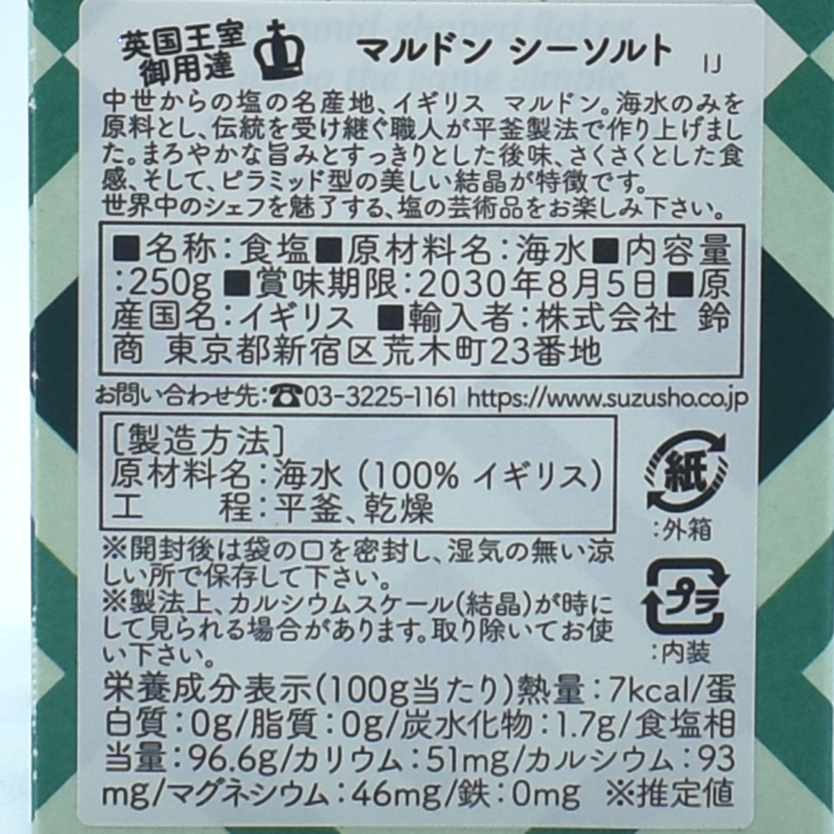 140年以上の歴史を誇る、英国エセックス州マルドンの伝統的な製塩法で造られたシーソルトです。
